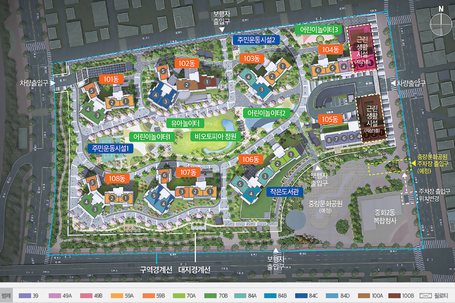 중화동 내 유일한 신축 아파트로, 중화뉴타운 내 첫 분양 단지입니다. 남향 위주 배치와 단지 내 차량 통행을 제한한 설계로 쾌적한 주거 환경을 제공합니다. - 평면 및 구조
