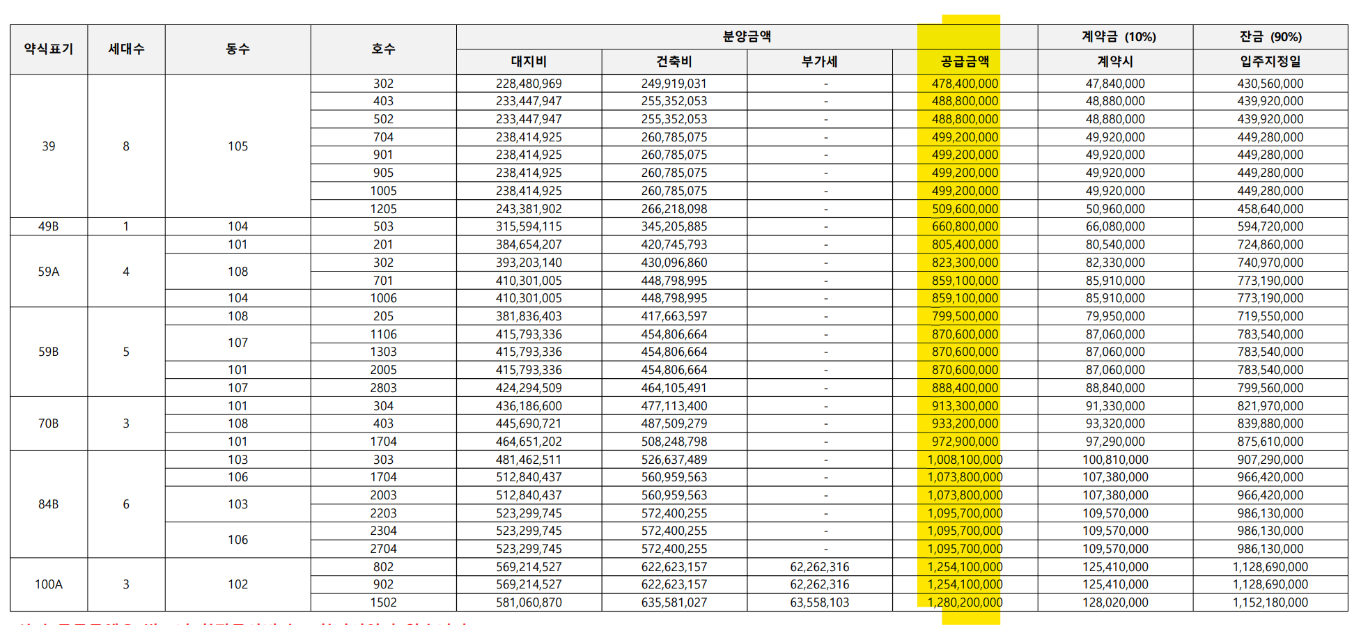 | 84B | 6 | 10억810만원 ~ 10억9570만원 |