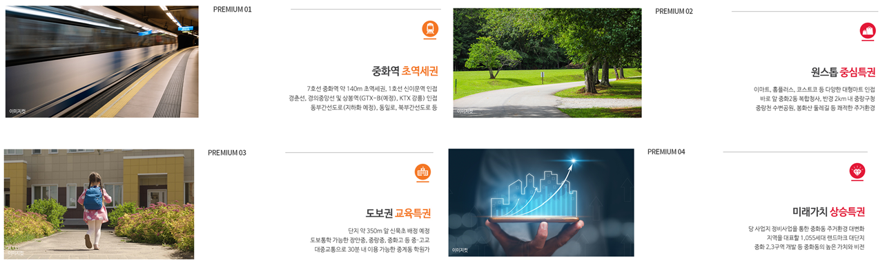 서울 중랑구 중화동에 위치하며, 7호선 중화역까지 도보 약 5분 거리로 교통 접근성이 뛰어납니다. 중화역에서 논현역까지 25분 정도 소요되어 강남권 출퇴근이 용이합니다. - 단지 구성 및 규모