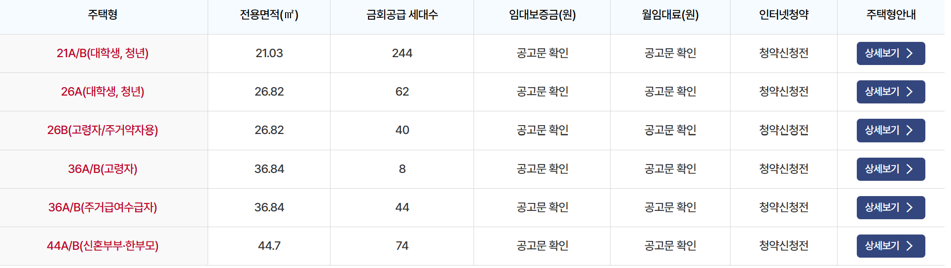 | 면적 | 21㎡ , 26㎡, 36㎡ , 44㎡ |