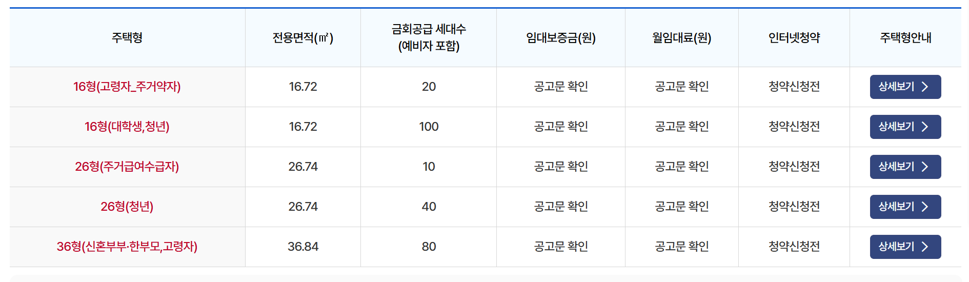 - 26형: 청년, 주거급여수급자, 고령자 대상