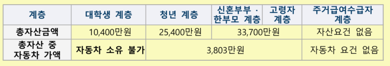- 신청자 부모와 본인의 월평균 소득합계가 2024년 도시근로자 가구원수별 월평균소득 100% 이하(1순위), 120% 이하 (2순위), 150% 이하(3순위) 일 것