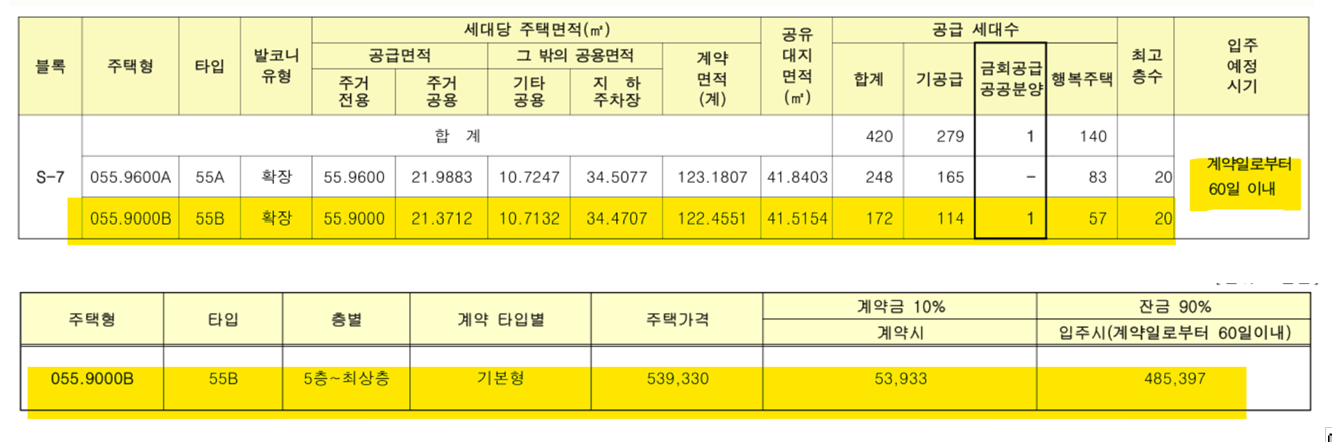 55㎡ 전용면적에 분양가는 5억3933만원으로 인근 아파트의 최근 거래가가 16억 정도여서 당첨만 되면 10억 원에 달하는 시세차익이 기대되는 로또 줍줍 아파트입니다.