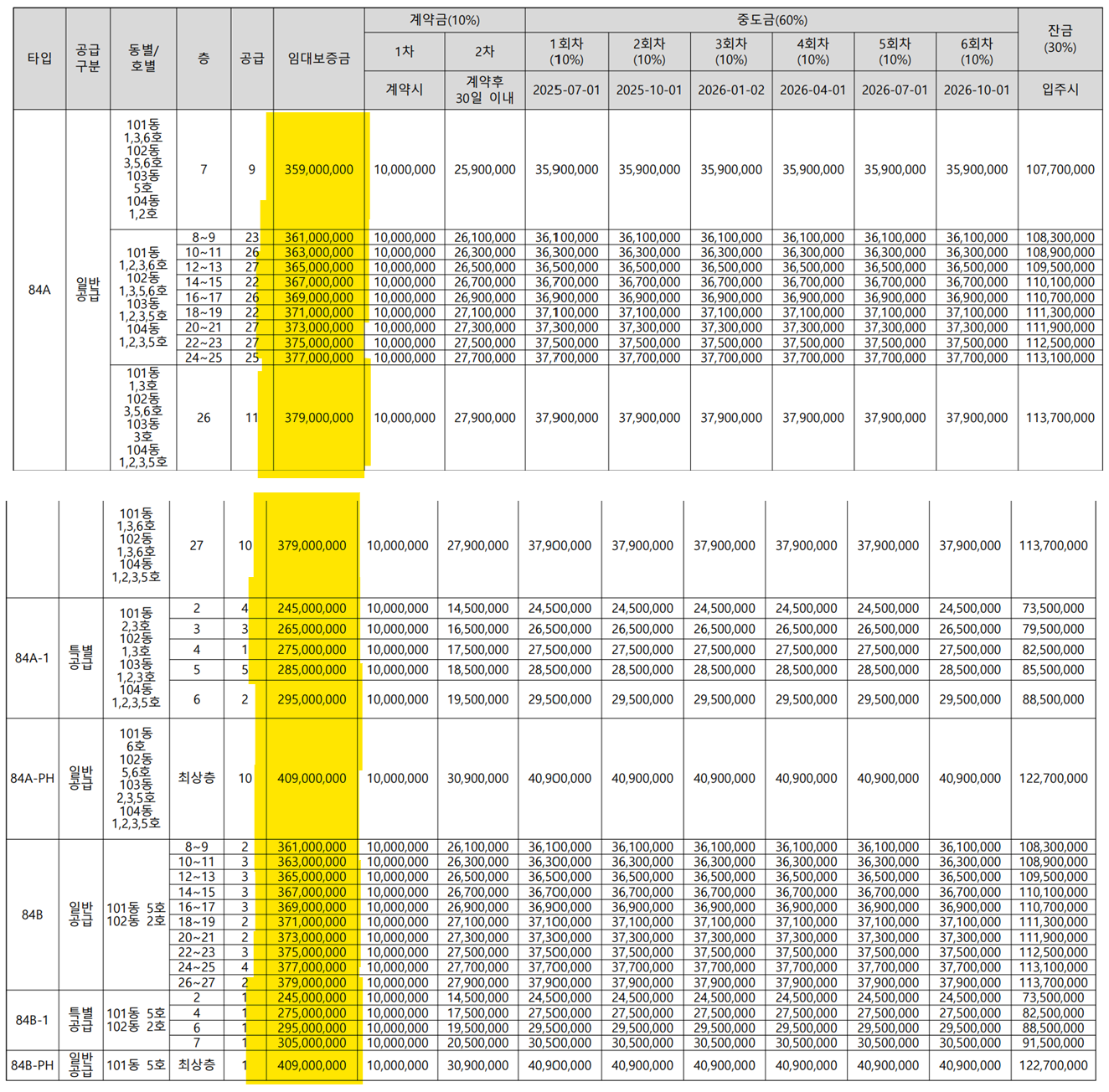 | 84B | 27 | 3억6100만원 ~ 3억7900만원 |
