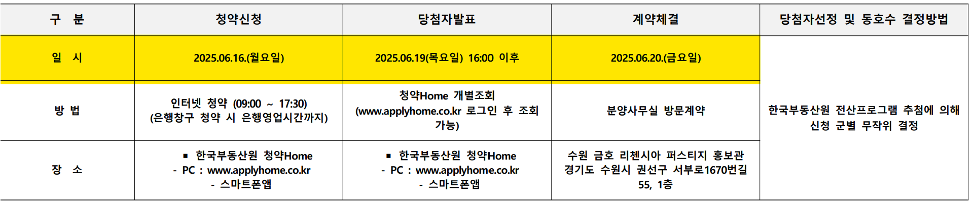 수원 금호 리첸시아 퍼스티지의 청약일정이 발표되었습니다.