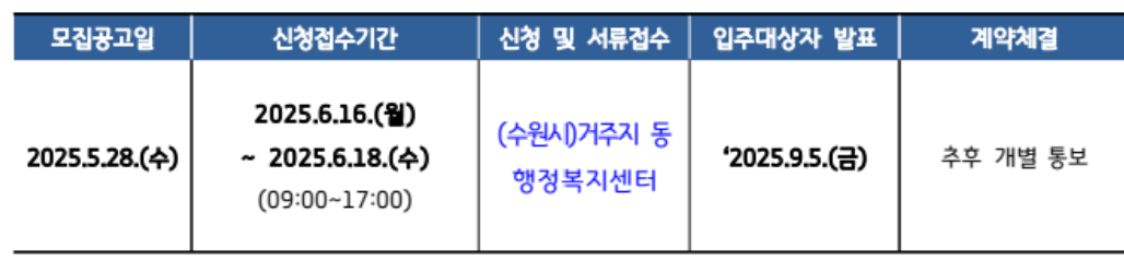 - 신청 대상: 2025년 5월 28일 기준 수원시에 거주하는 만 65세 이상 무주택 세대구성원