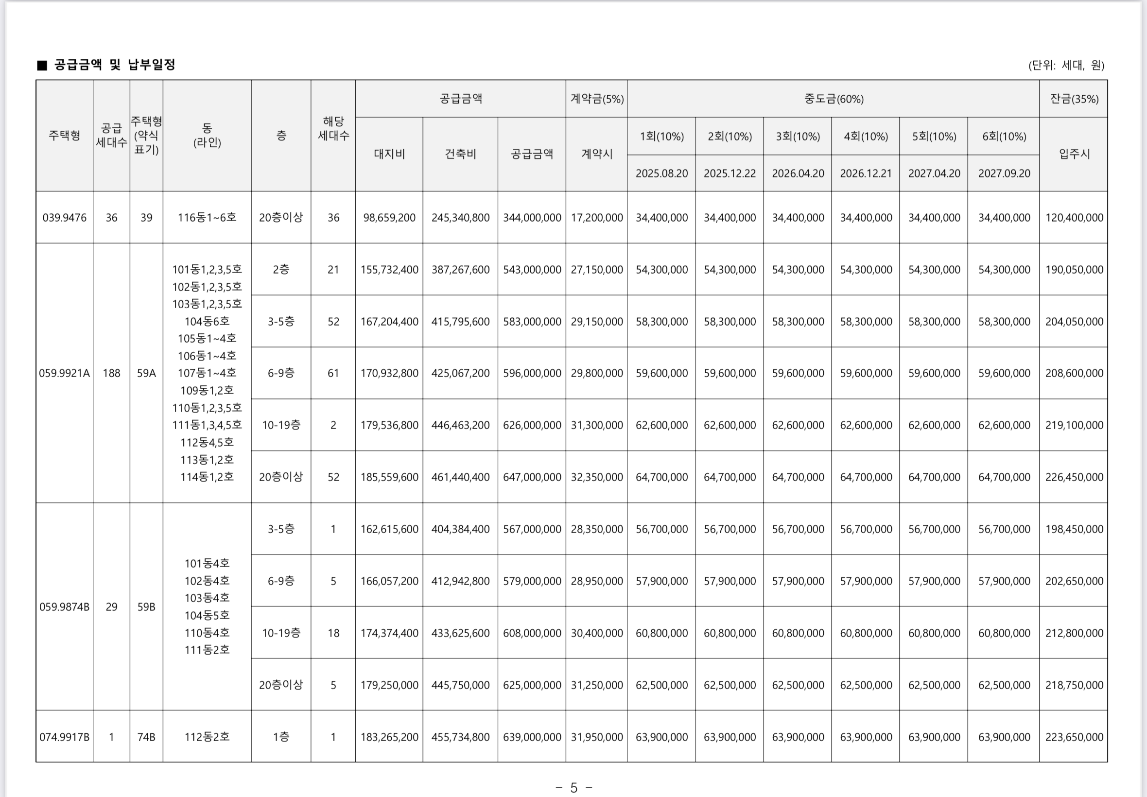 | 59A | 188 | 5억4300만원 ~ 6억4700만원 |