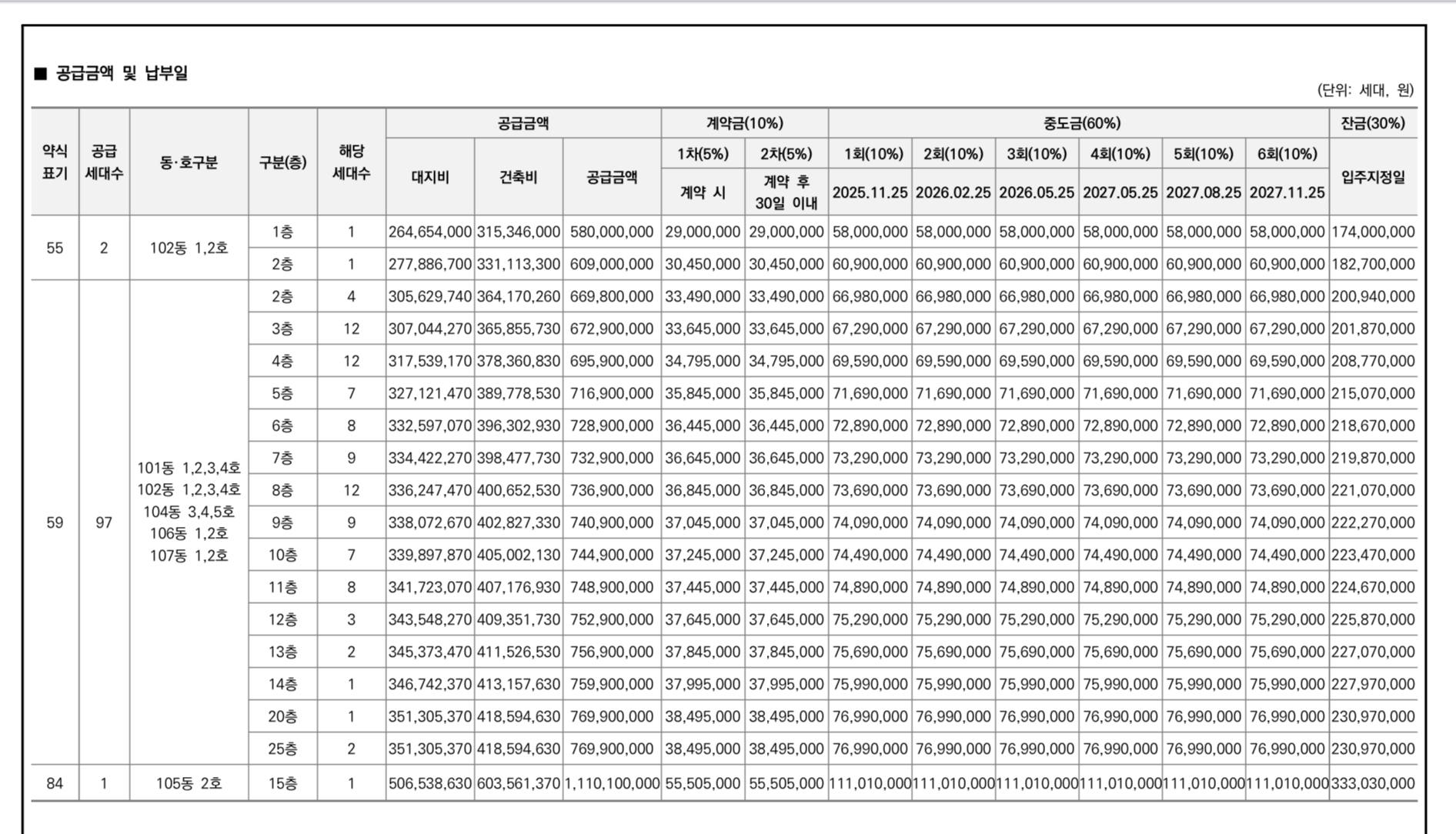 | 55 | 2 | 5억8천만원~6억9백만원 |