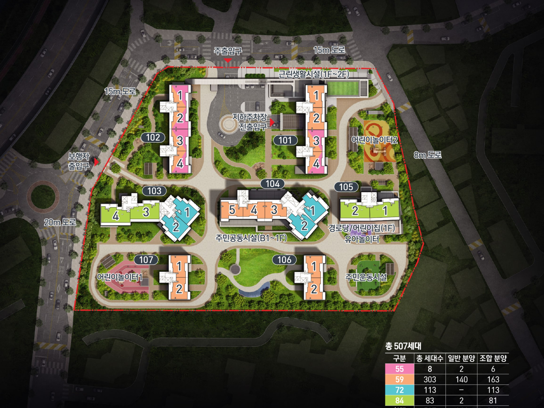 | 면적 | 55㎡ , 59㎡, 84㎡ |