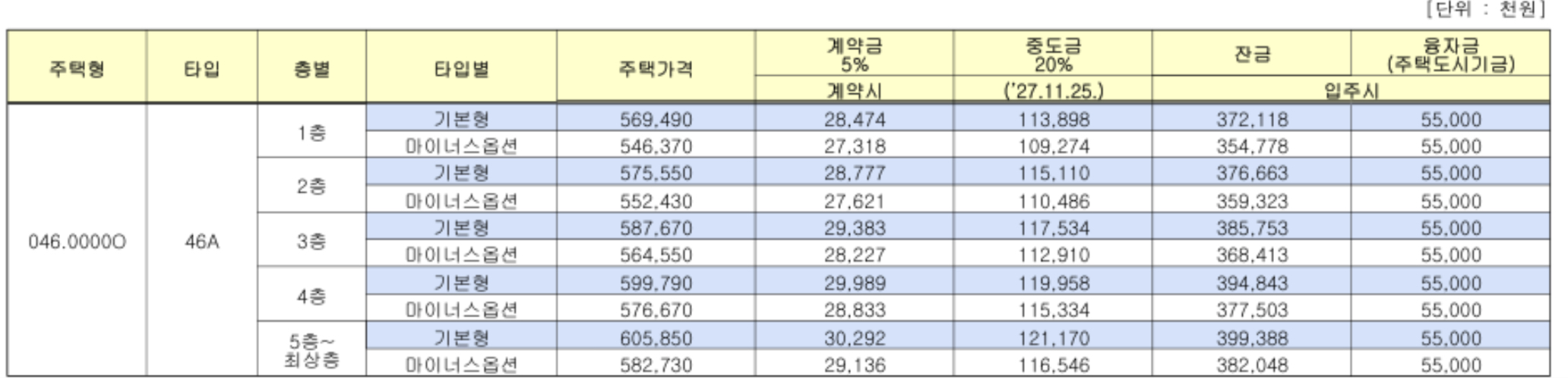- 주택 유형: 전용 46㎡, 55㎡ (5개 타입)