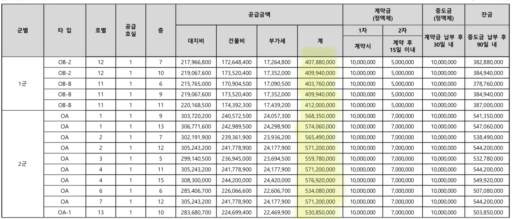 | OB-B | 42 | 3 | 4억376만원~4억1200만원 |