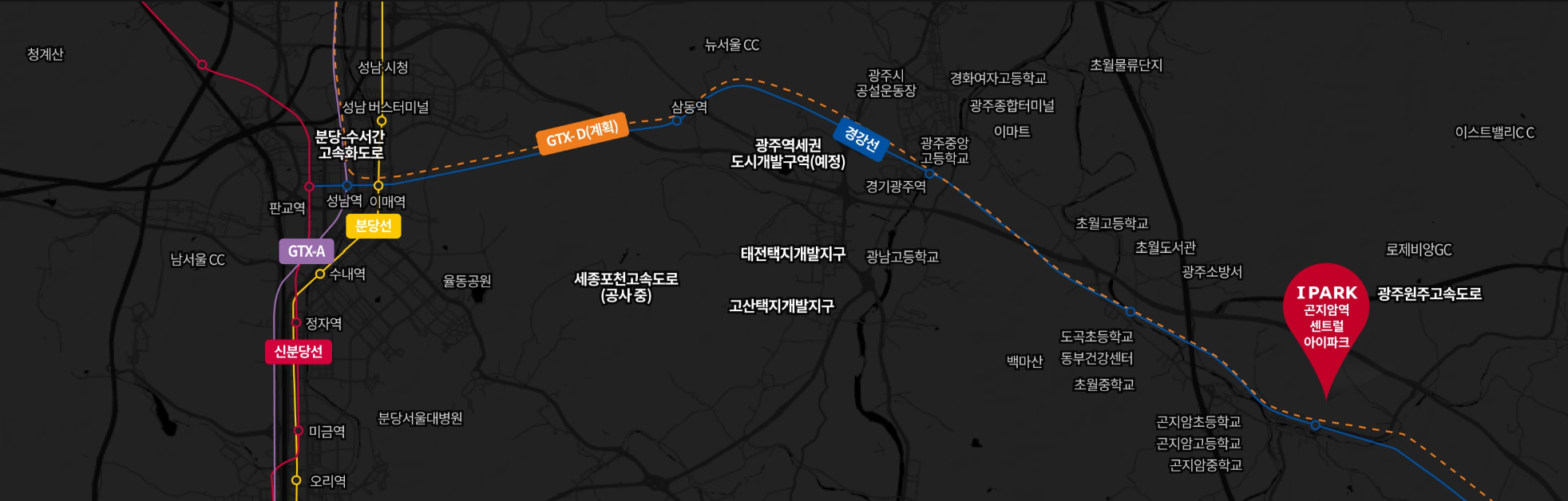 곤지암 역세권 신주거타운 가운데 가장 입지가 우수하다는 평가를 받는 곳으로 경강선 곤지암역과 가장 가까운 위치에 있습니다.