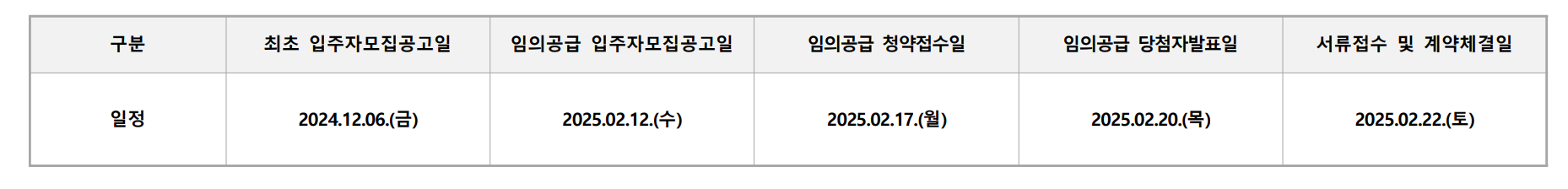 임의공급 당첨자 발표일 : 2025년 2월 20일
