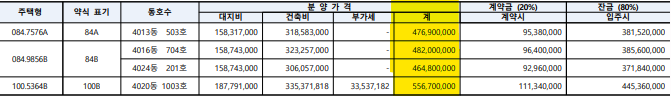 | 84B | 2 | 4억6480만원~4억8200만원 |