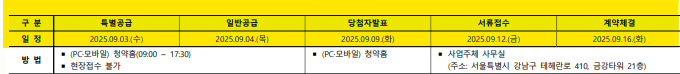 - 특별공급청약 신청일 : 2025.9.3