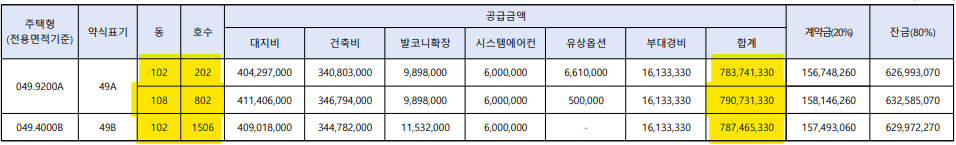 | 49A | 2 | 783,741,330 ~ 790,731,330 | 102-202, 108-802 |