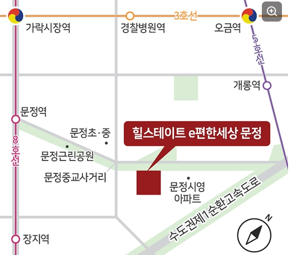 - 강남권과 송파 생활권의 장점을 모두 누릴 수 있는 최적의 입지 조건을 갖추었으며 지하철 8호선 문정역과 매우 가까워 도보로 접근 가능하여, 출퇴근 및 이동 편의성이 뛰어납니다.