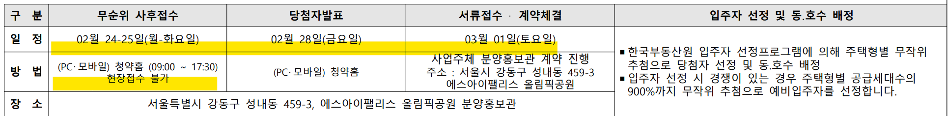 - 무순위 청약신청 : 2월 24일 ~ 2월 25일
