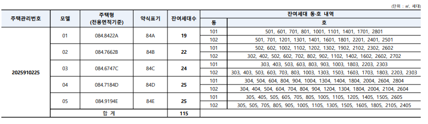 | 84E | 25 | 12억9900만원~13억7300만원 |