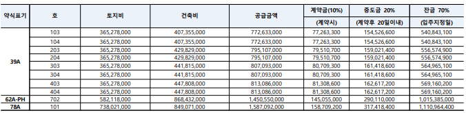 | 면적 | 39㎡ , 62㎡,78㎡ |