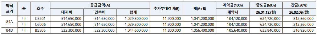| 입주예정일 | 2026년2월예정 - 최초 입주개시는 2025.7.31, 잔금납부완료시 즉시 입주가 |