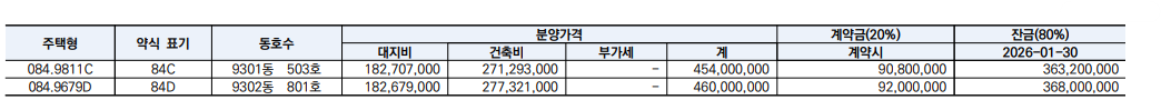 | 84C | 1 | 4억5400만원 | 9301-503 |