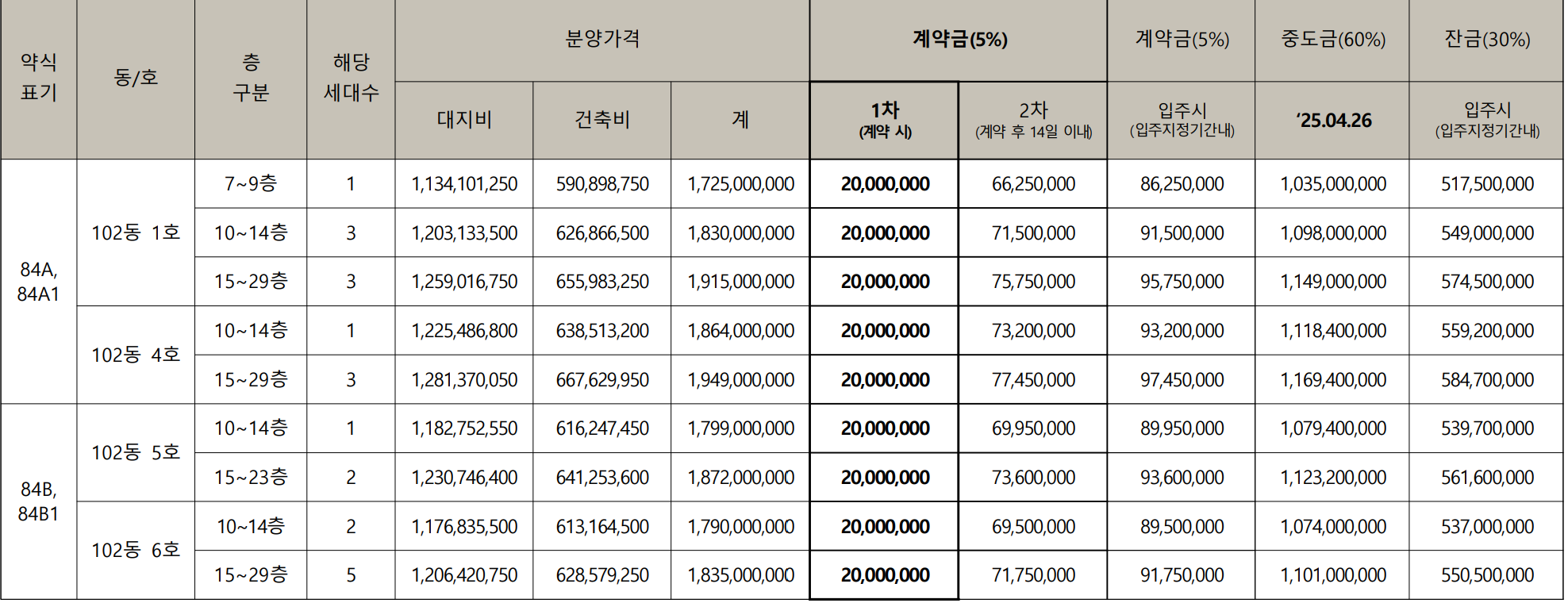 - 면적: 전용면적 84㎡ (A~E 타입)