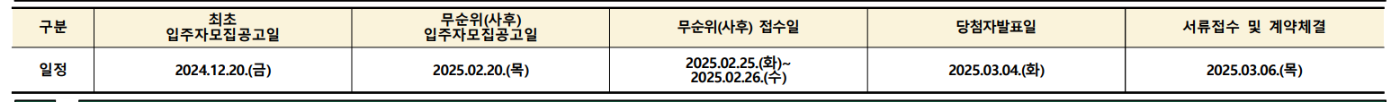 - 무순위 청약신청일 : 2025년 2월 25일 ~ 26일