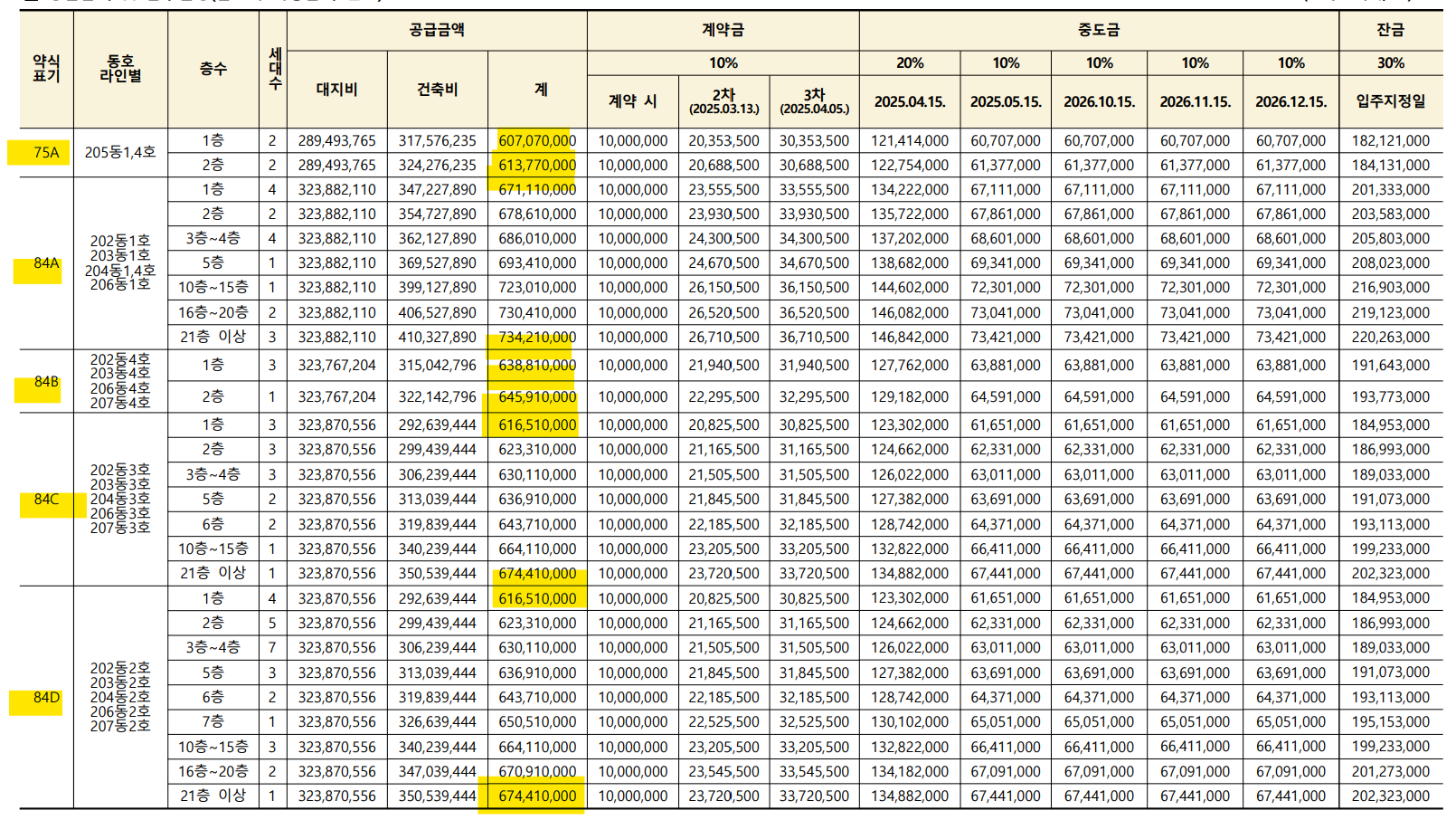 - 84C: 15세대 / 6억 1651만 원 ~ 6억 7441만 원