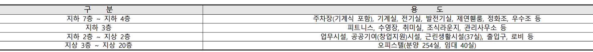 - 구조 : 지하 7층~지상20츨 오피스텔