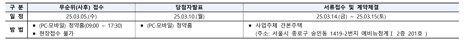 - 서류접수 & 계약체결 : 2025.3.14~3.15