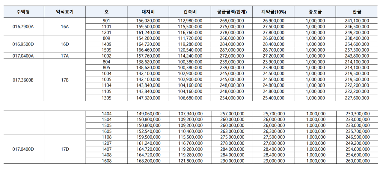 - 17B : 11세대 / 2억 3900만 원- 2억 6300만 원