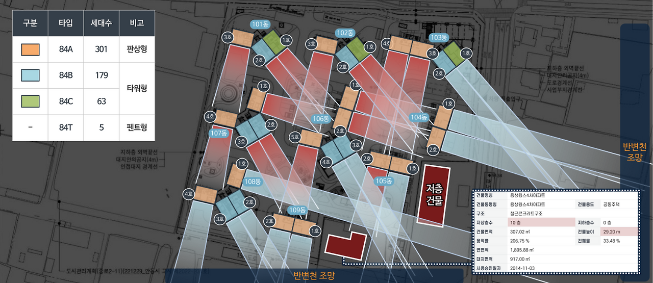 - 단지 특징: 남향 위주의 배치로 채광과 통풍이 뛰어나며, 지상에 차 없는 설계로 공원형 단지를 구성하고 있습니다.