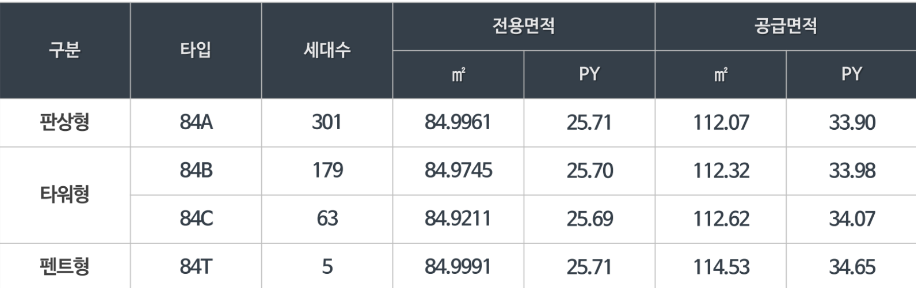 - 84A : 301세대 / 392,384,000원 ~ 443,619,000 원