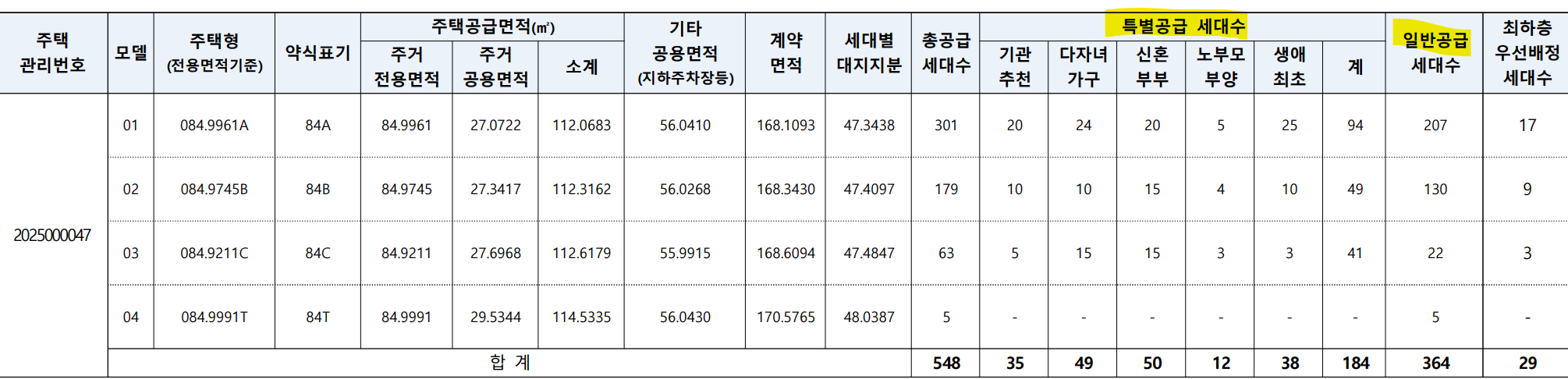 - 규모: 총 548세대 ( 특별공급 184세대 )