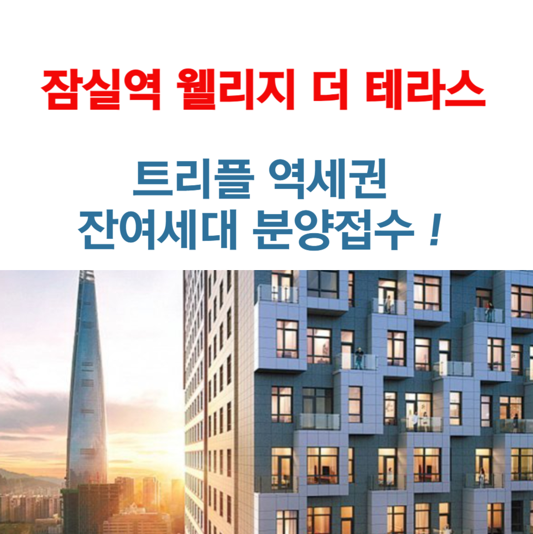 잠실역 웰리지 더테라스 잔여세대 분양접수! 2년간 대출이자지원혜택! 본문