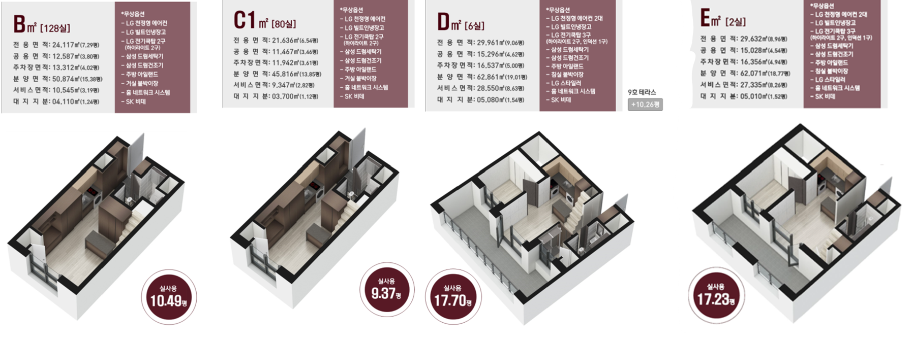 - D : 2실 / 5억 5036만 원 ~ 5억 6131만 원