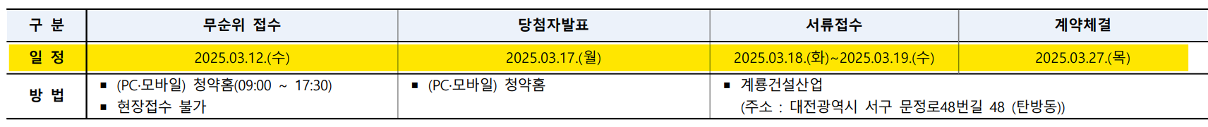 - 대전광역시에 거주하거나 세종특별자치시, 충청남도에 거주하는 자 우선 공급입니다.