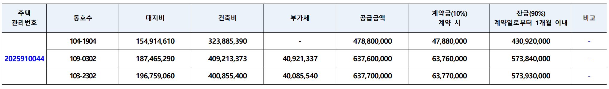 - 107 : 1세대 / 6억 3770 만 원 - 103동 2302호