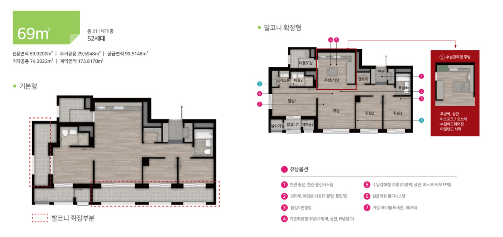 각평형은 확장형과 기본형의 평면도를 참고하시기 바랍니다.