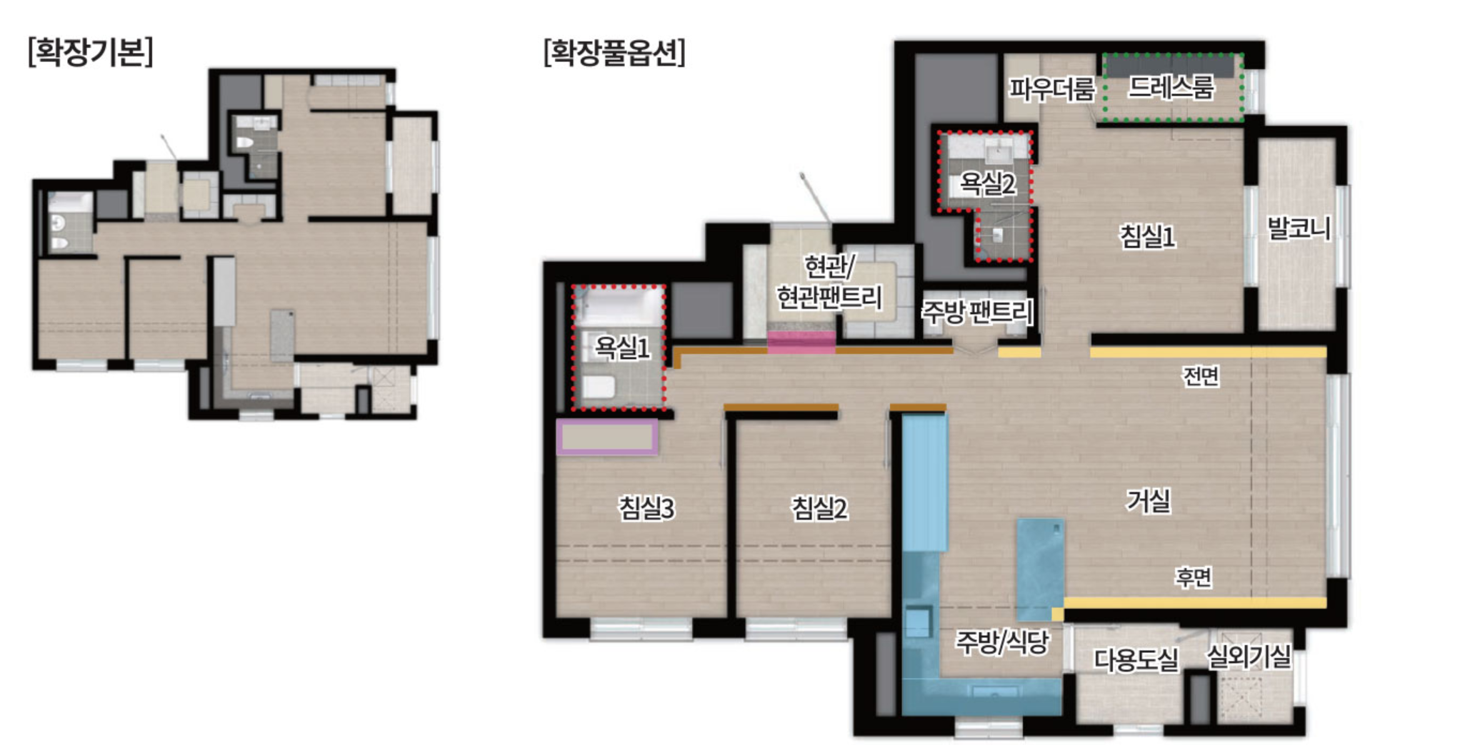 | 면적 | 세대수 | 가격 | 층 구분 |