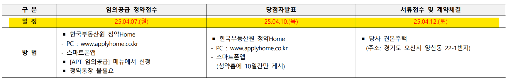 - 서류접수및 계약일 : 2025.4.12