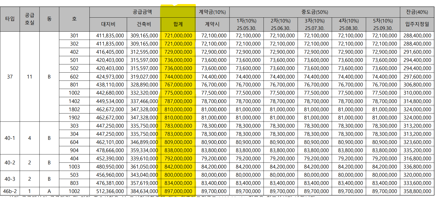 | 40-1 | 4 | 7억8300만원 ~ 8억3900만원 |