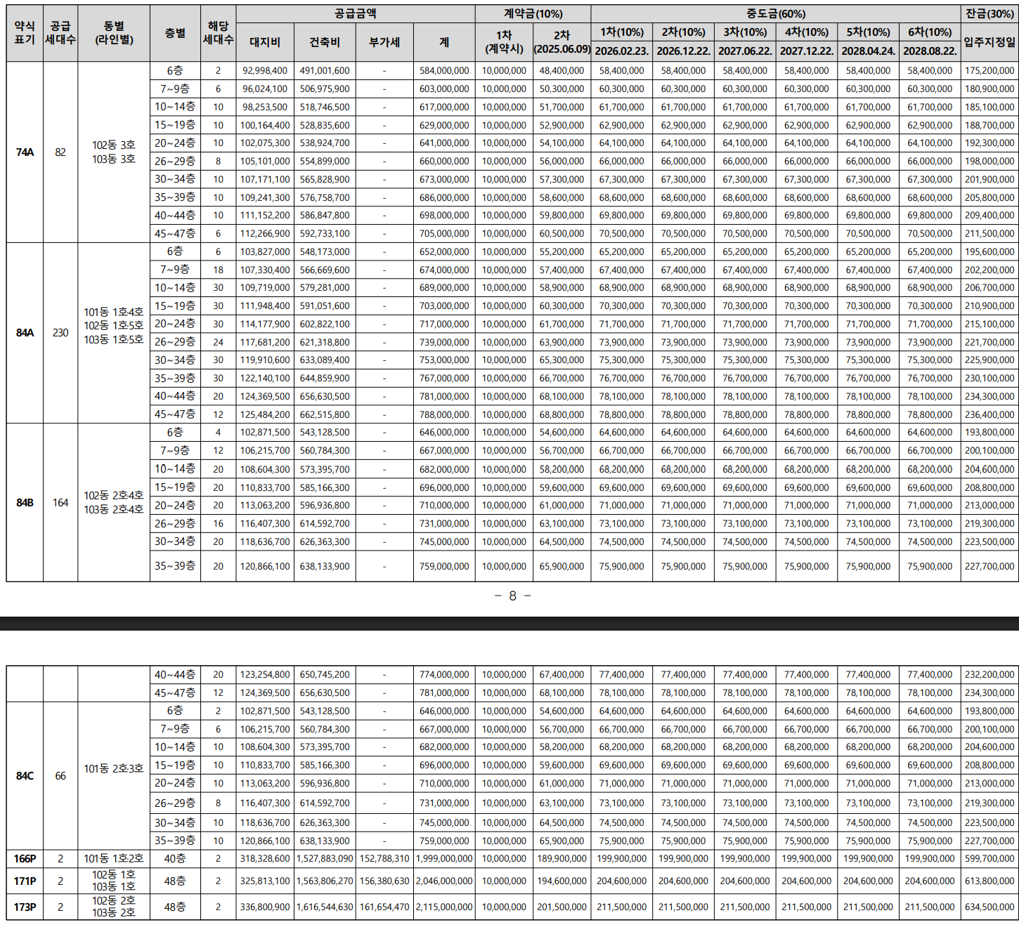 | 84B | 164 | 6억4600만원 ~ 7억8100만원 |