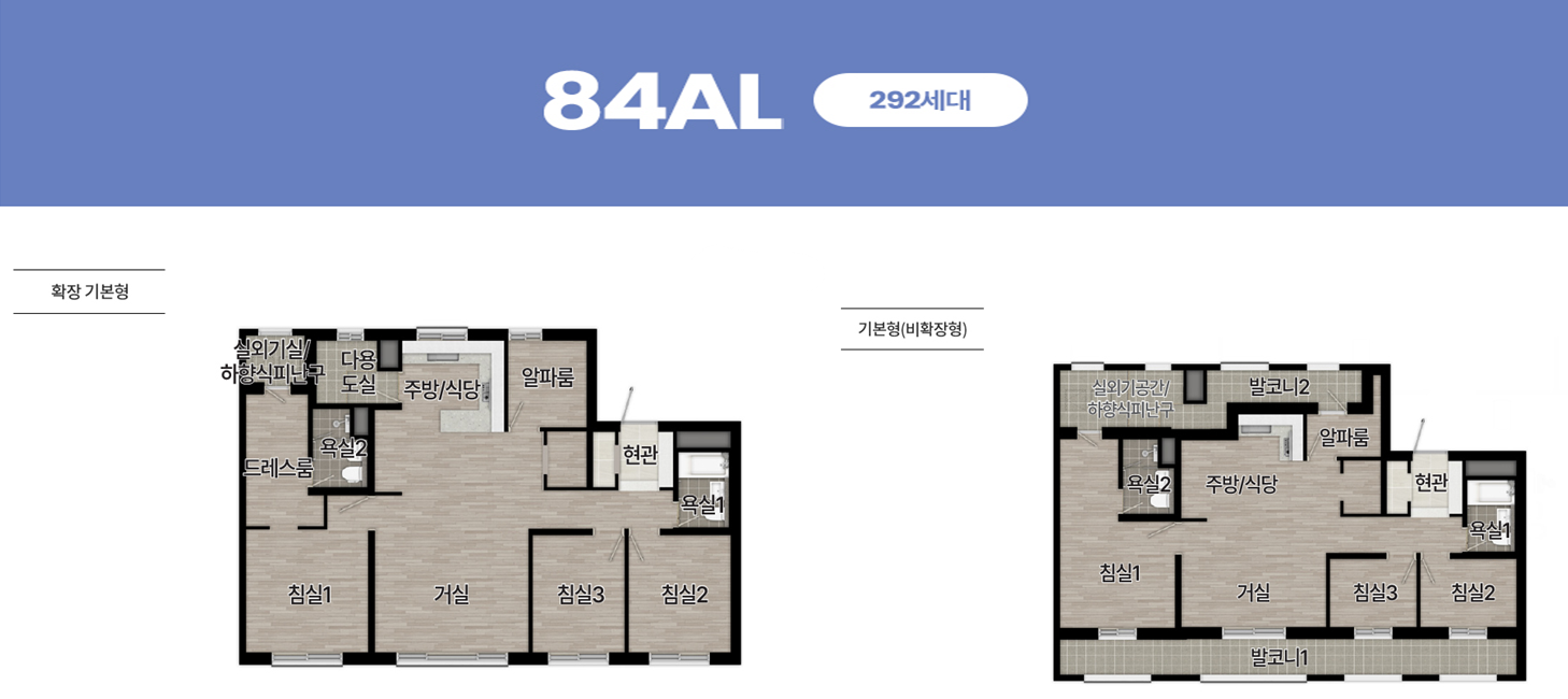 | 84AL | 292 | 3억9200만원 ~ 4억5100만원 |