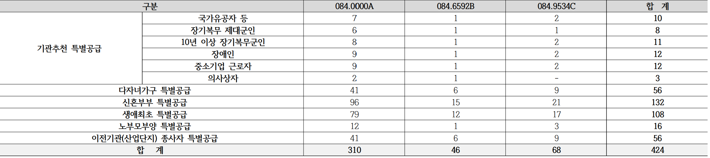 특별공급 공급세대수