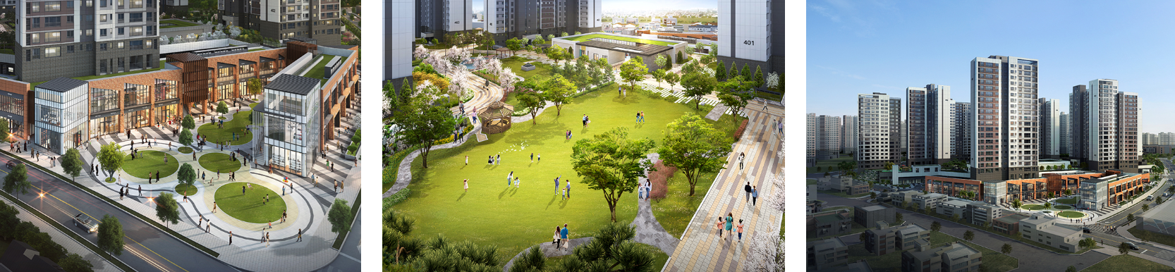 - 커뮤니티 정원은 잔디광장, 숲속정원, 물소리정원등으로 꾸며서 어린 자녀들이 마음 놓고 뛰어놀 수 있는 공간으로 계획되었습니다.