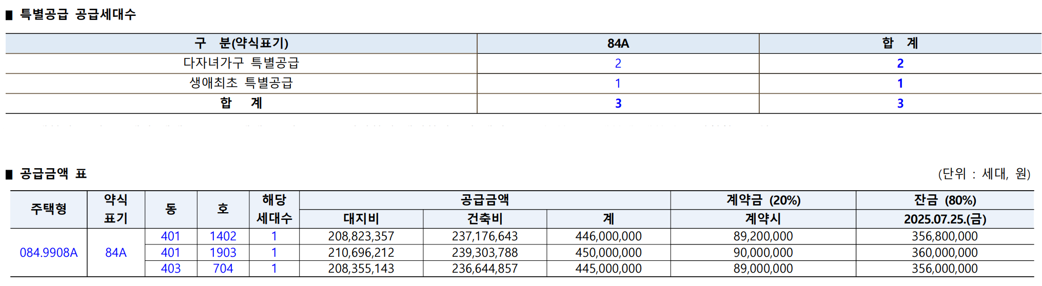 불법행위로 인한 취소세대는 특별공급으로 다자녀가구 2, 생애최초 1로 공급됩니다.