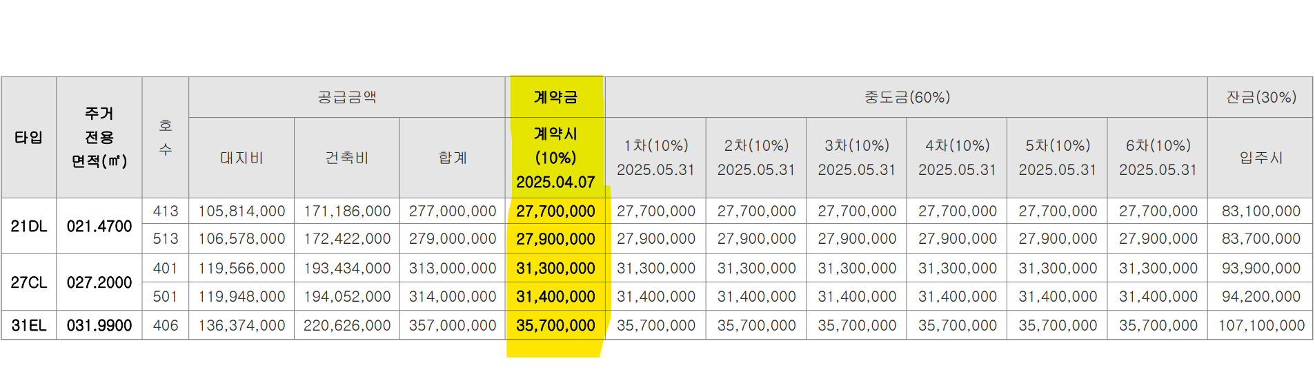 | 27CL | 2 | 3억1300만원 ~ 3억1400만원 | 401,501 |