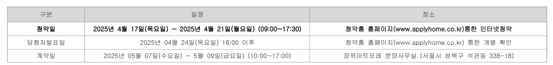 - 청약 신청일 : 2025.4.17 ~ 4.21